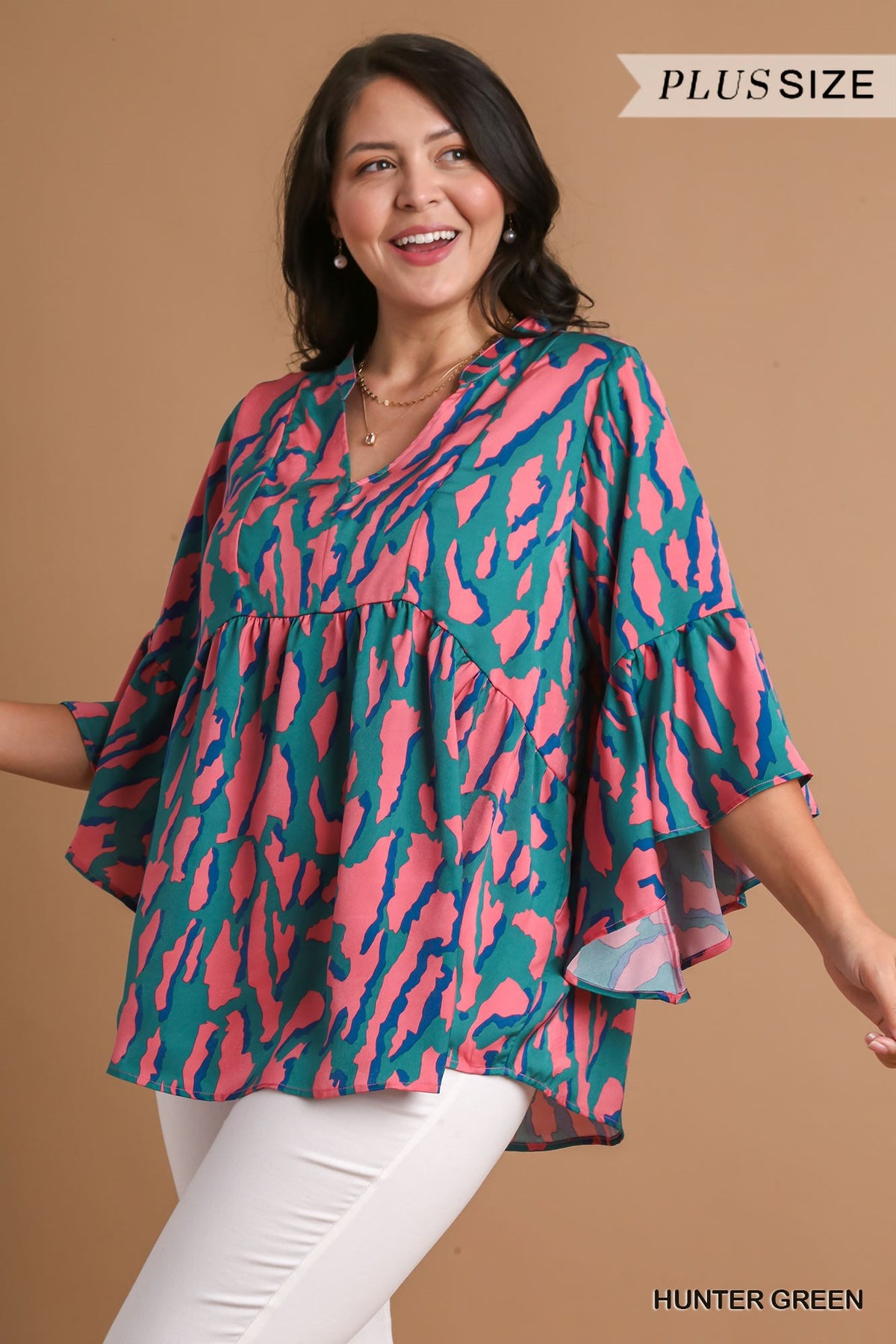 Umgee Satin Leopard Baby Doll Top