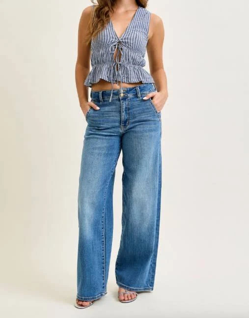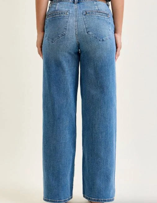 Judy Blue Women's Medium Wash Wide Column High-Rise Trouser Jeans 82696